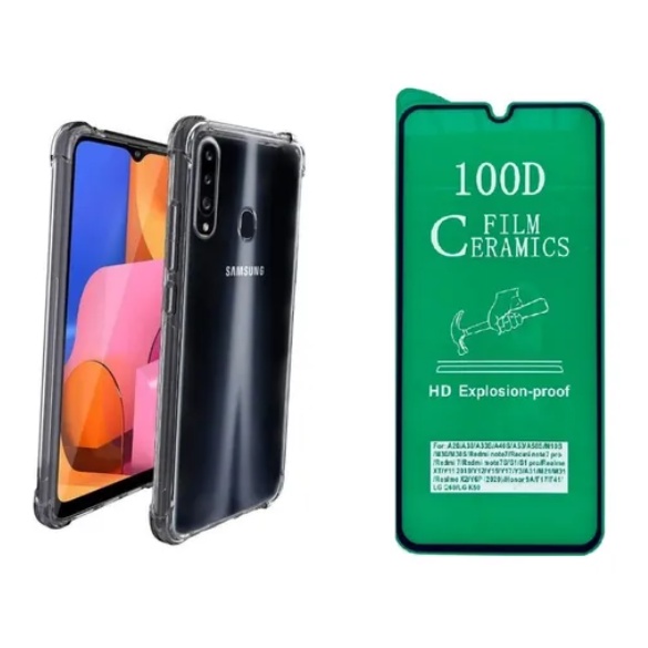 Capa Anti Impacto Para Samsung Galaxy A30s + Pelicula De Ceramica 9d (Anti queda shock choque proteção protetora air bag silicone TPU reforçada incolor transparente celular aparelho borda capinha case)