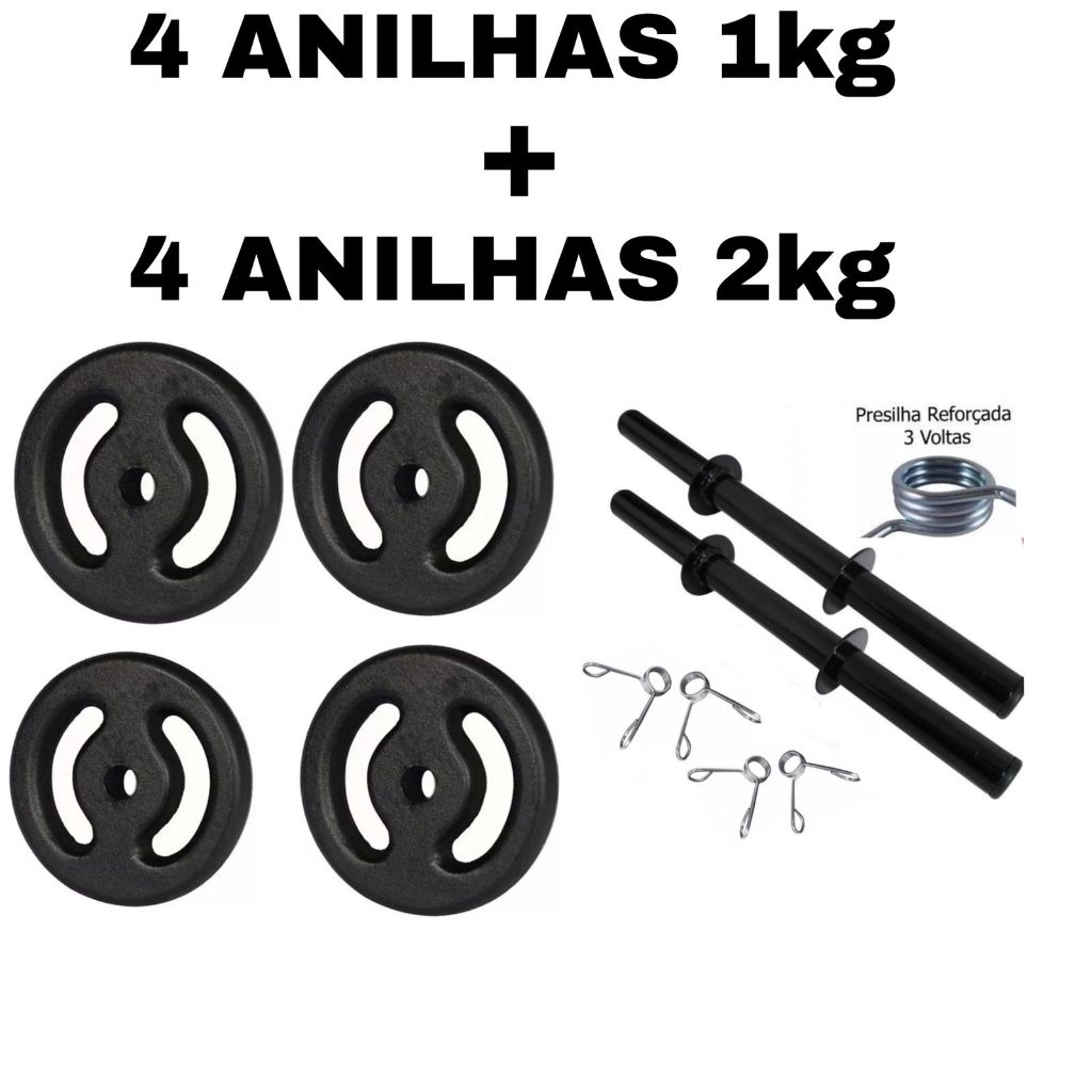 Kit 2 Barras Ocas 40cm com Presilhas + 4 Anilha 1kg + 4 Anilha 2kg | Halter De Peso Para Musculação Treino Em Casa Peso De Academia