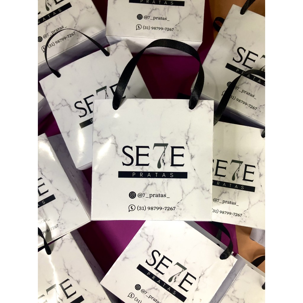 50 MINI SACOLA PERSONALIZADA COM LOGO 10X10X4 PAPEL FOTOGRAFICO 180G