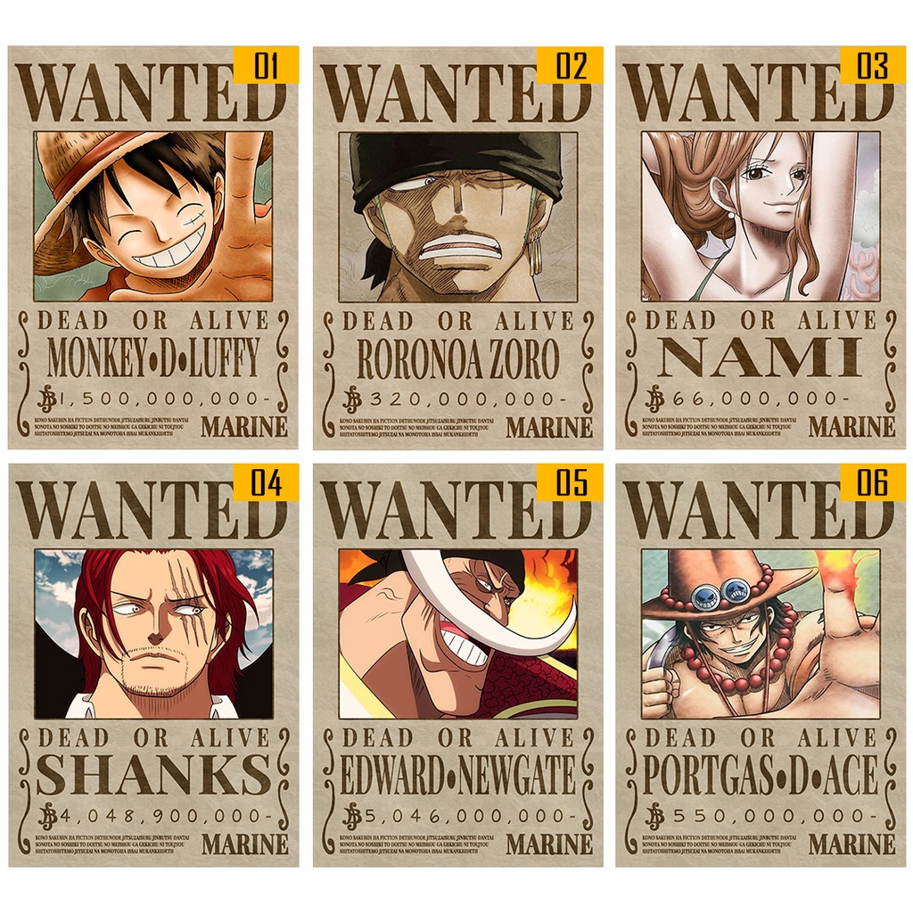 Kit 5 Quadros Decorativos One Piece 15X20 Anime Placa Decorativa Recompensa Luffy Zoro Sanji Wanted