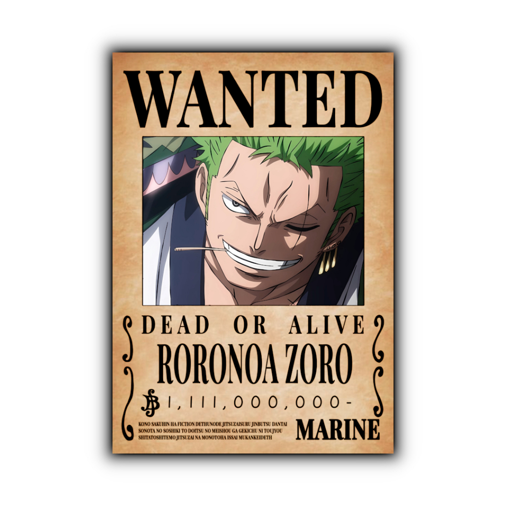 Placa Decorativa One Piece Zoro Wanted Recompensa Poster Coleção Exclusiva