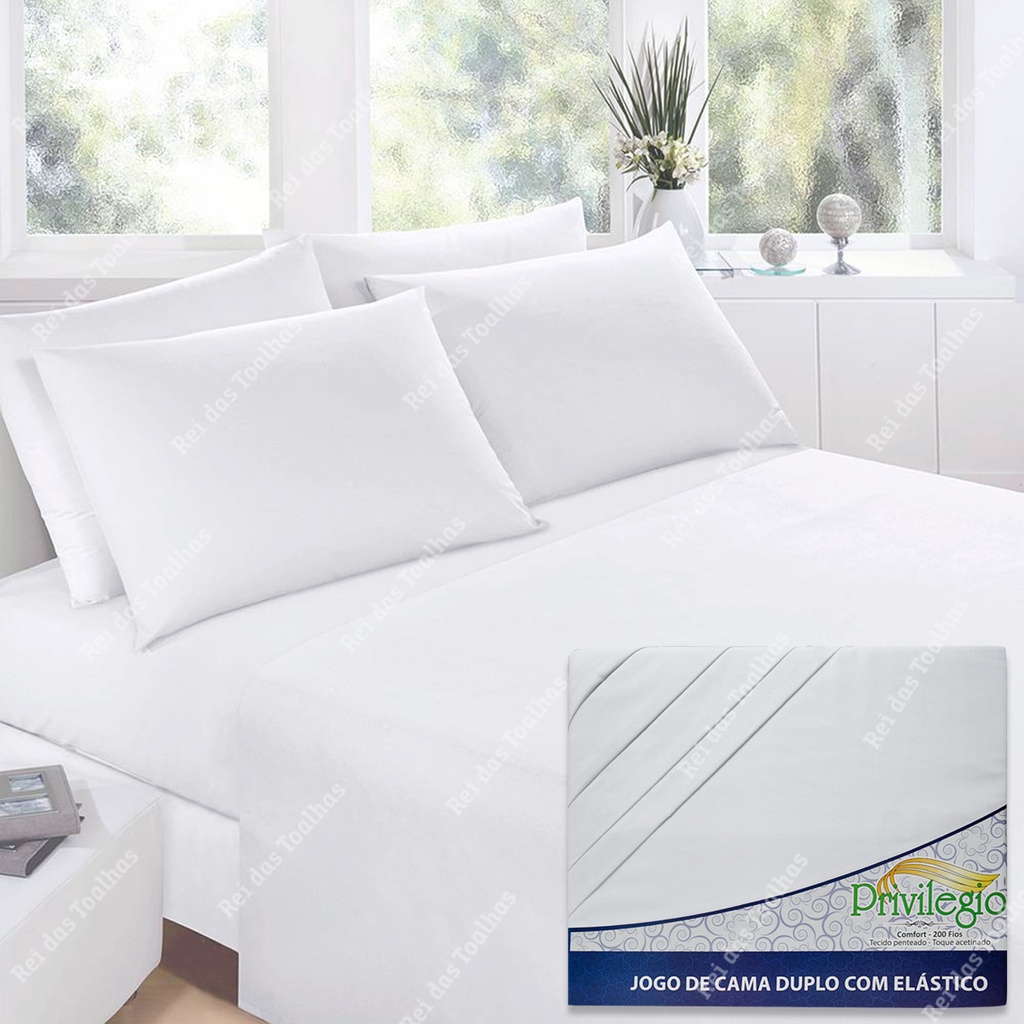 Jogo De Cama King Duplo Com Elástico Percal 200 Fios 04 Peças 100 % Algodão PRIVILÉGIO