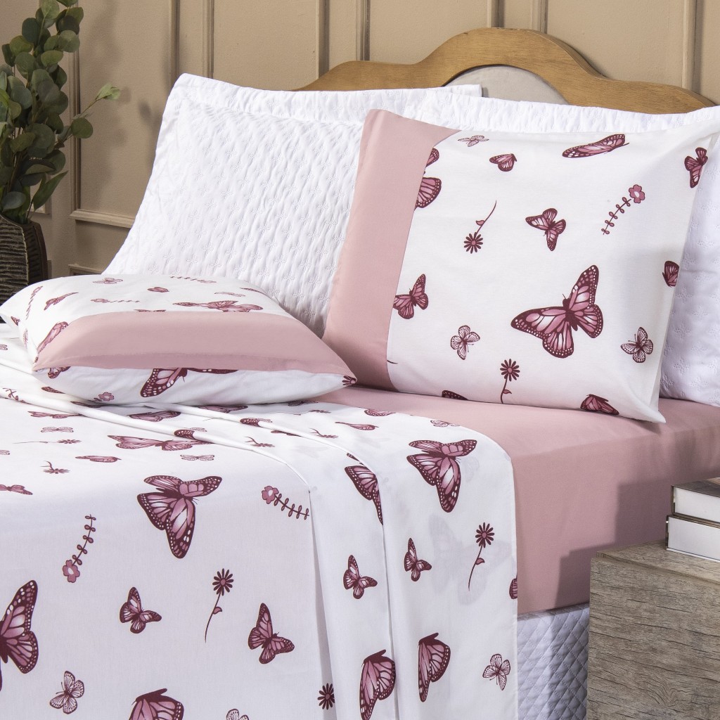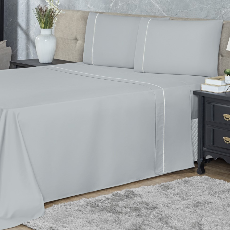 Jogo de lençol King 04 Peças Algodão Percal 180 fios Com Ponto Palito Vivale