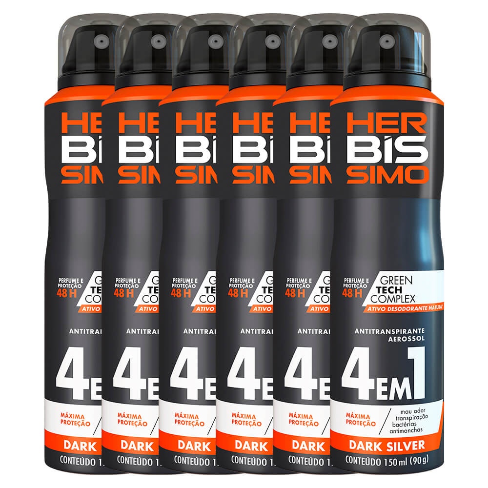 Kit Desodorante Aerosol Antitranspirante Herbissimo Dark Silver 150Ml com 6 Unidades