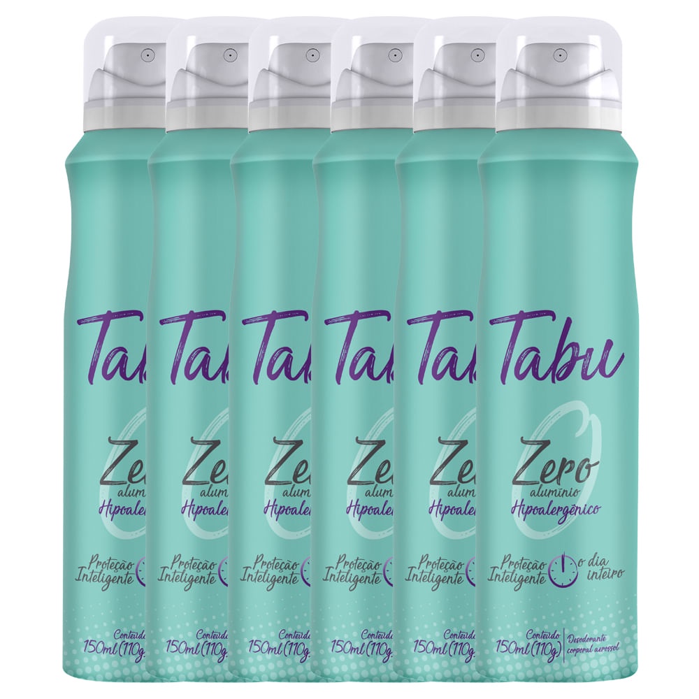 Kit Desodorante Aerosol Antitranspirante Tabu Zero 150Ml com 6 Unidades