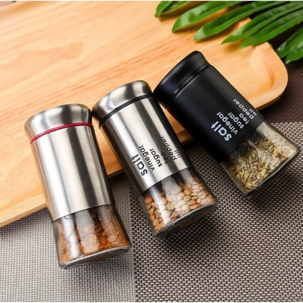 Saleiro Pimenteiro Porta Temperos Condimentos Vidro e Aço Inox Com Visor Luxo
