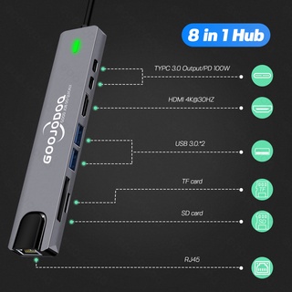 HUB USB Tipo C Para HDMI-compatible 8 Em 1 Com 4 K 1080P 3.0 PD Dock Carregador MacBook Pro Air Splitter