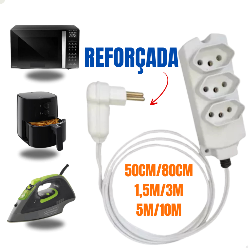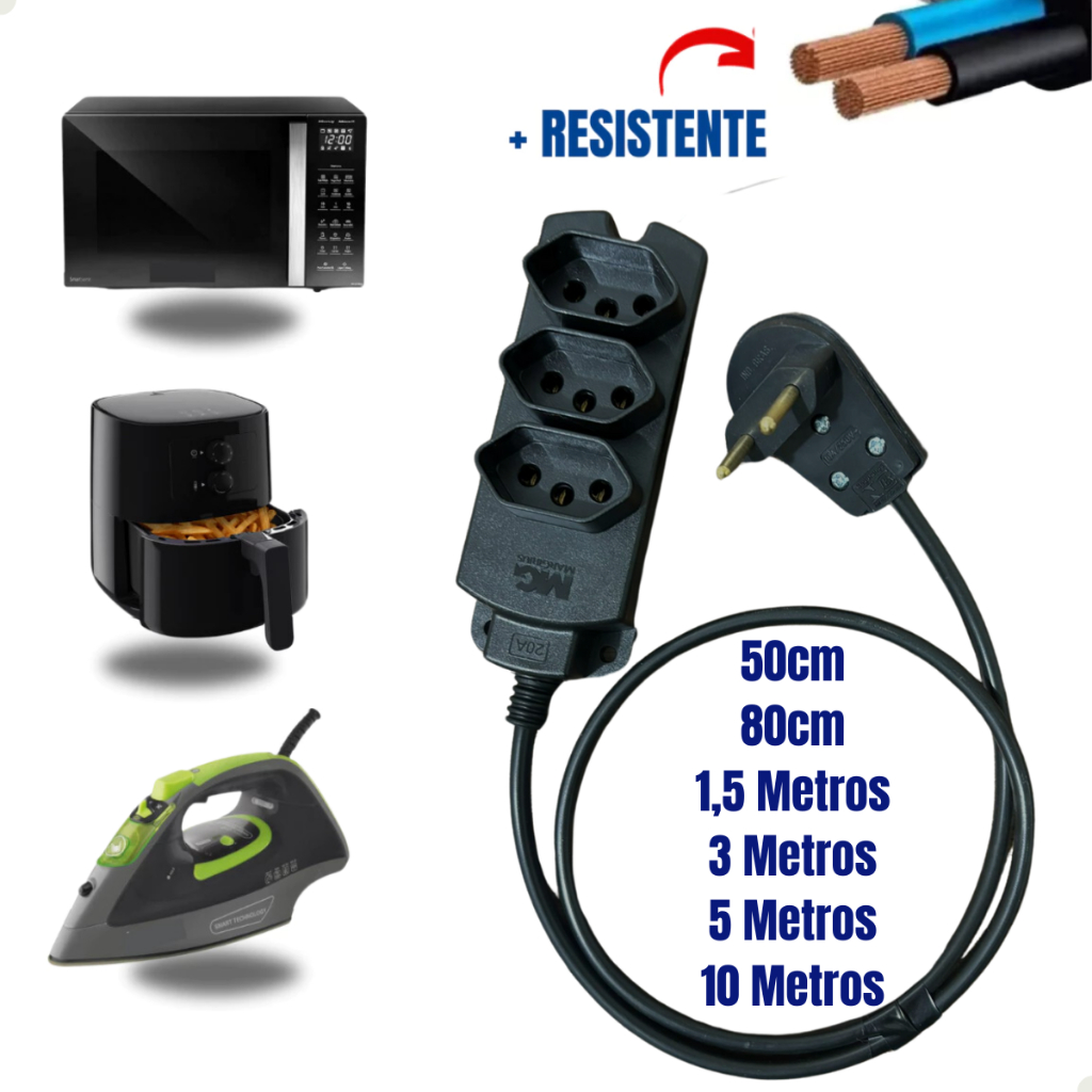 Extensão De 3 Tomadas 10/20 Amperes Com Desconto 50cm/80cm/1,5/3/5/10 Metros