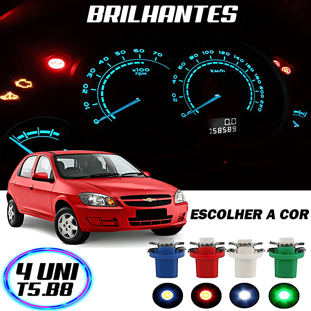 Kit 4 Lampadas De Led Painel T5 B8.5 w5w Celta Corsa Gol Montana Prisma Meriva Parati