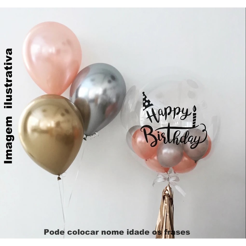 Balão Bubble 24p Com 12 Balões Metalizado com nome e idade ou com cartela para Personalizar