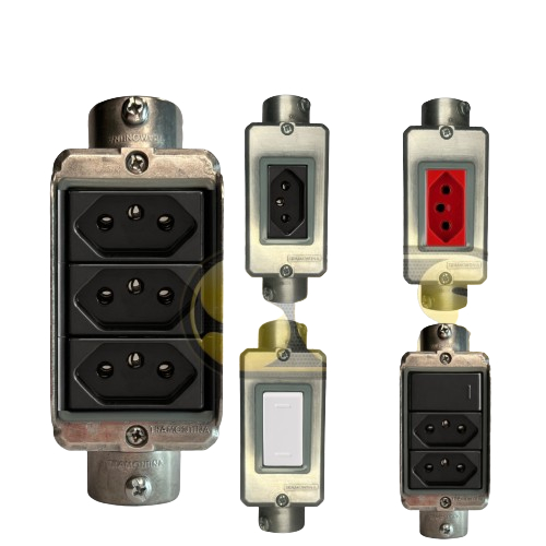 CONJUNTO CONDULETE 3/4 COM TOMADA E INTERRUPTOR TRAMONTINA ALUMINIO LIZ BRANCO/GRAFITE