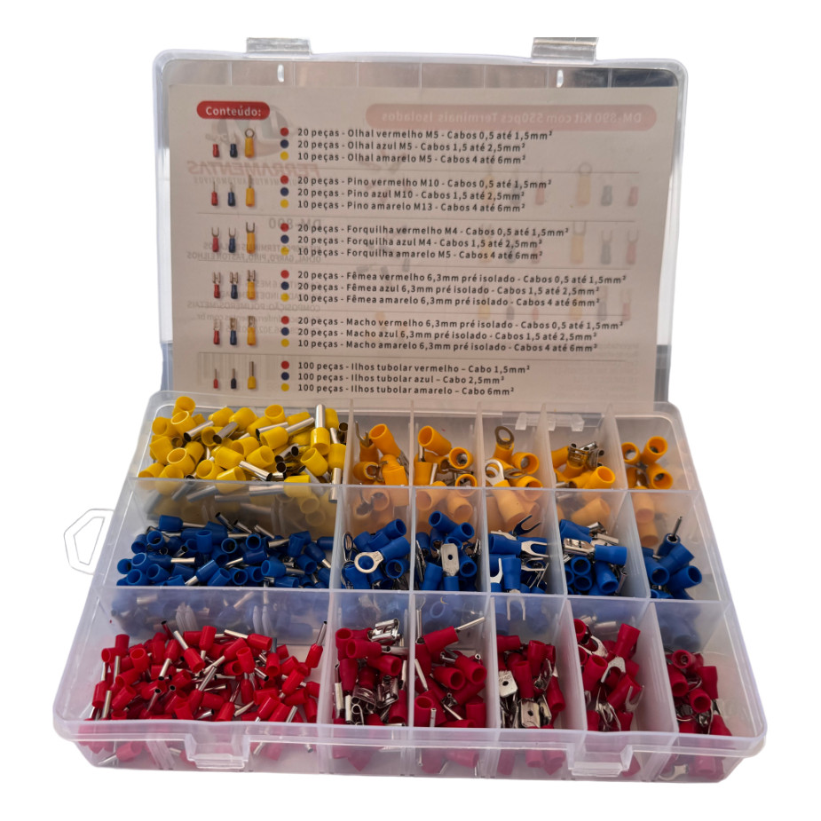 Kit Terminais Isolados 550pcs Olhal, Garfo, Pino, Faston E Ilhos