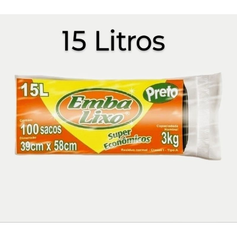 Saco para lixo 15 litros 100 unidades 39 x 58 cm Embalixo cesto escritório banheiro lixeira cozinha