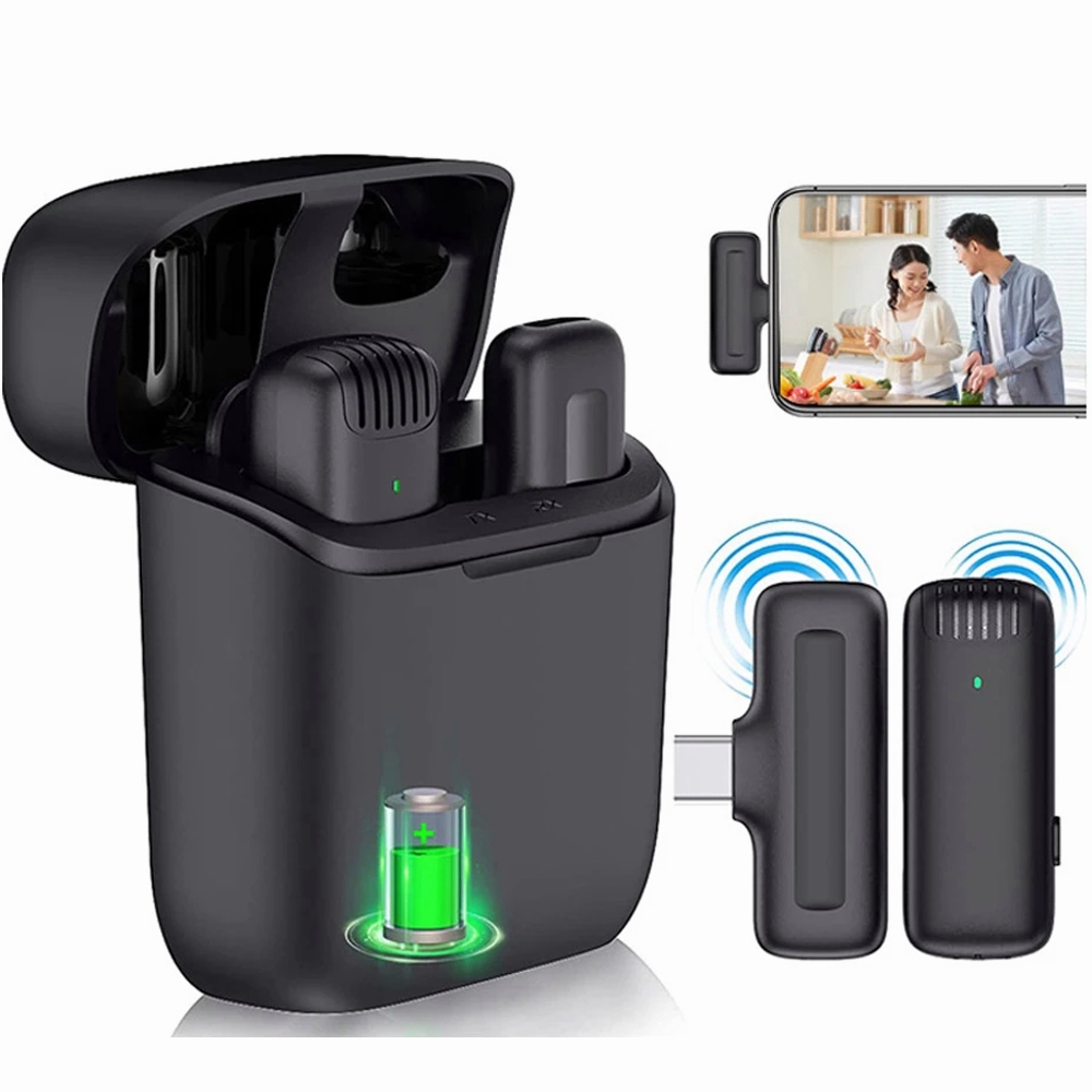 Microfone lapela sem fio portátil com caixa de carregamento, redução de ruído, Mini, áudio, vídeo, gravação, iPhone, Android