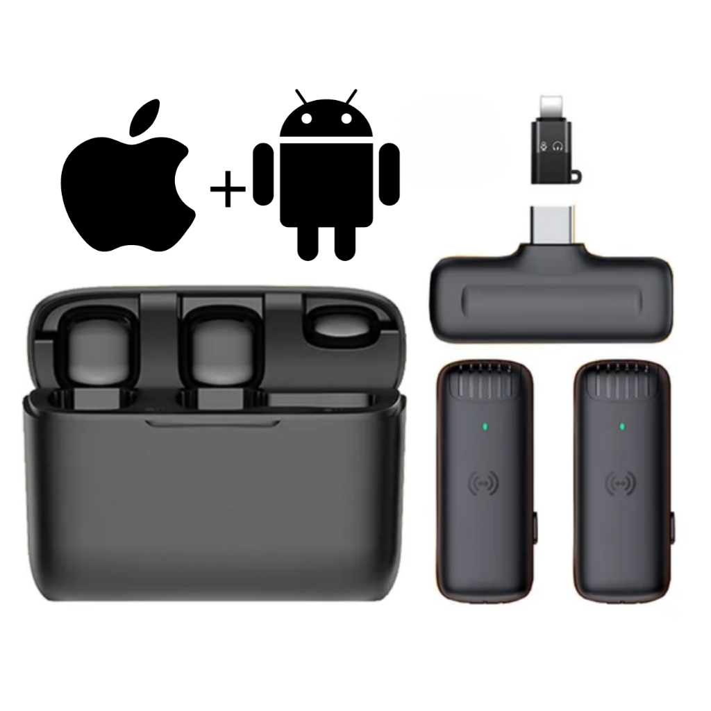 Microfone de Lapela Duplo sem Fio Portátil Redução de Ruído Gravação de Vídeo Com Caixa de Carregamento Microfone para iPhone Android