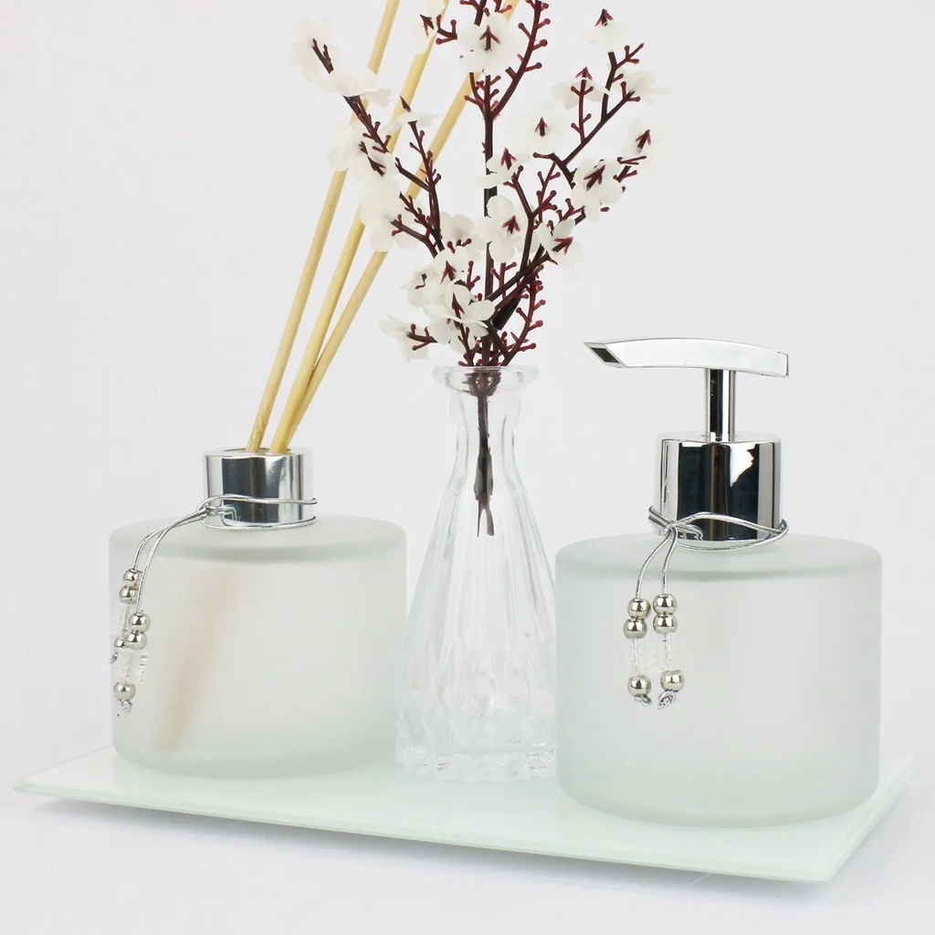 Kit Para Lavabo Luxo Aromatizador Saboneteira Bandeja Vaso Decorativo + Luxuosas Varetas Decoradas -K291 Coleção Belga