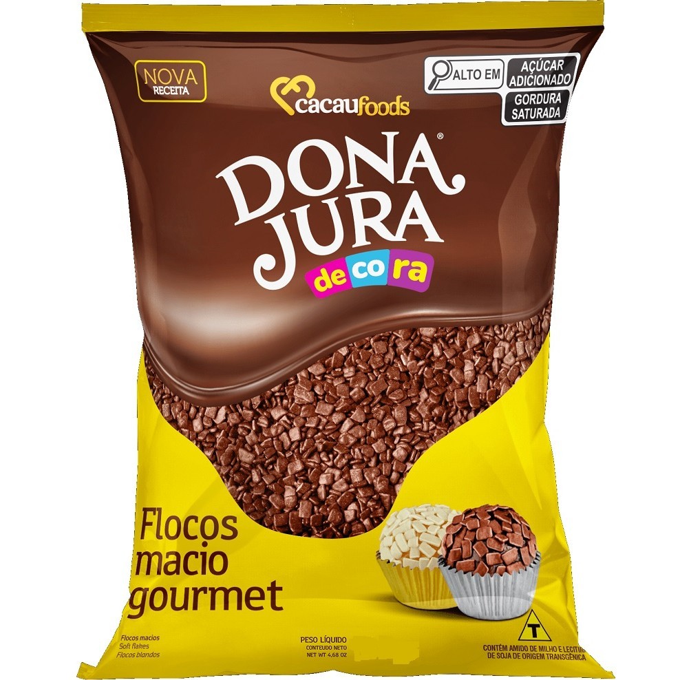 Flocos Brigadeiro Macio Gourmet Chocolate Branco Dona jura 500g Cacau Foods Zero Lactose