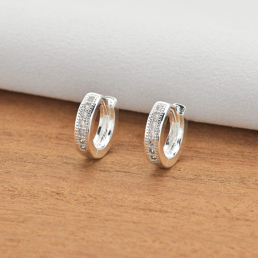 Brinco Masculino Feminino Argola Neymar Prata Cravejado Zirconia Banhado a ouro Branco Unissex