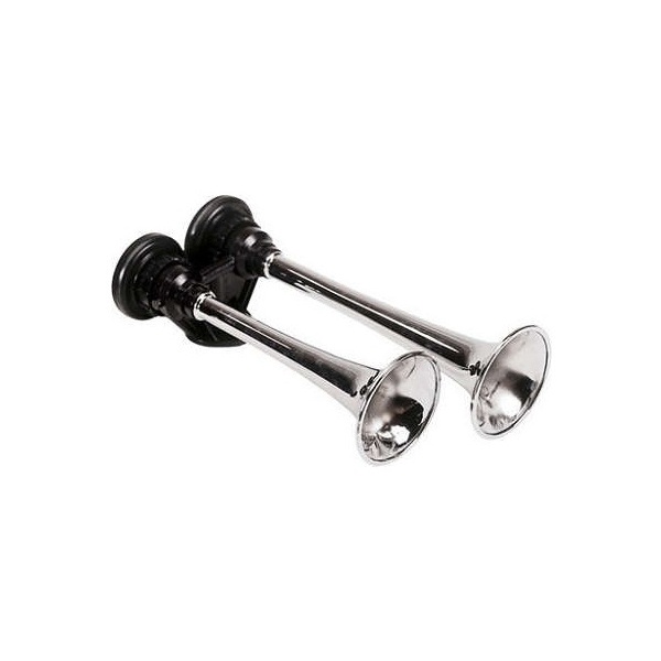 Buzina a Ar 2 Dupla Cromada Caminhão 12v 24v Marítima