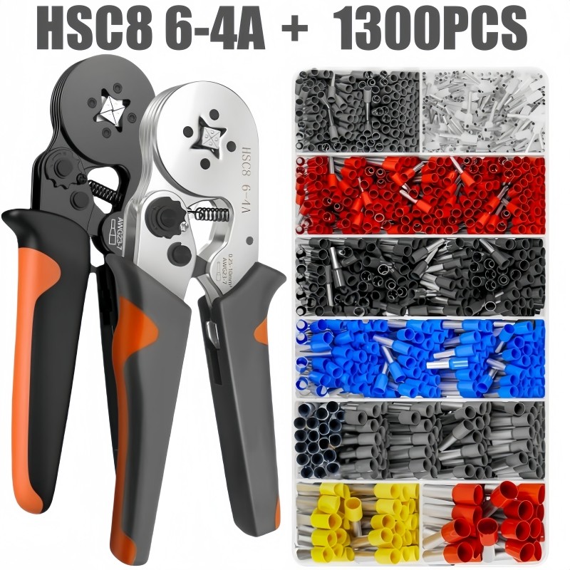 Alicate Cripador Prensa Terminal Tubular Ilhos Com Kit 1200 Ferrules Terminais De Fio 0.25-10 mm²