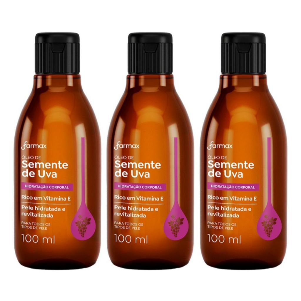 Kit C/3 Óleo Corporal Hidratante Semente de Uva Farmax 100ml