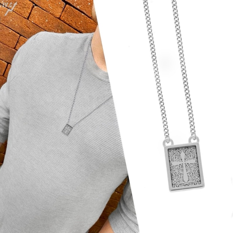 Colar Escapulário Masculino Corrente 316l Cristão Católico Cruz Aço Inox cor Prata Qualidade e Envio Seguro Pronta Entrega