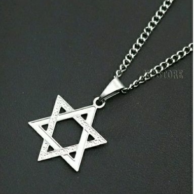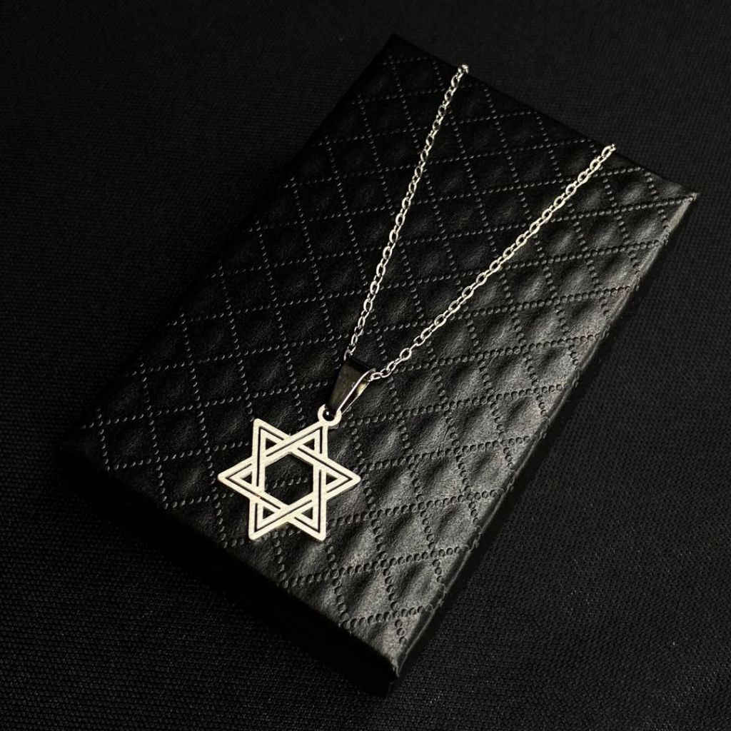 Colar Prateado Estrela de Davi em Aço Inox 316 Para Presente Corrente Cordão Feminino Masculino