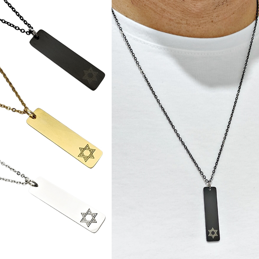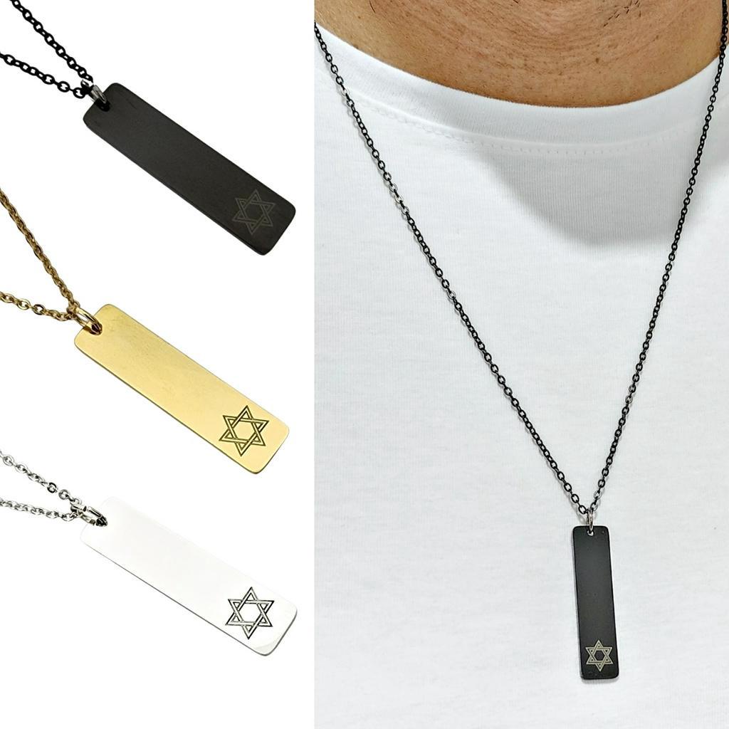 Colar corrente masculino Estrela de Davi aço inox gravação verso personalizada