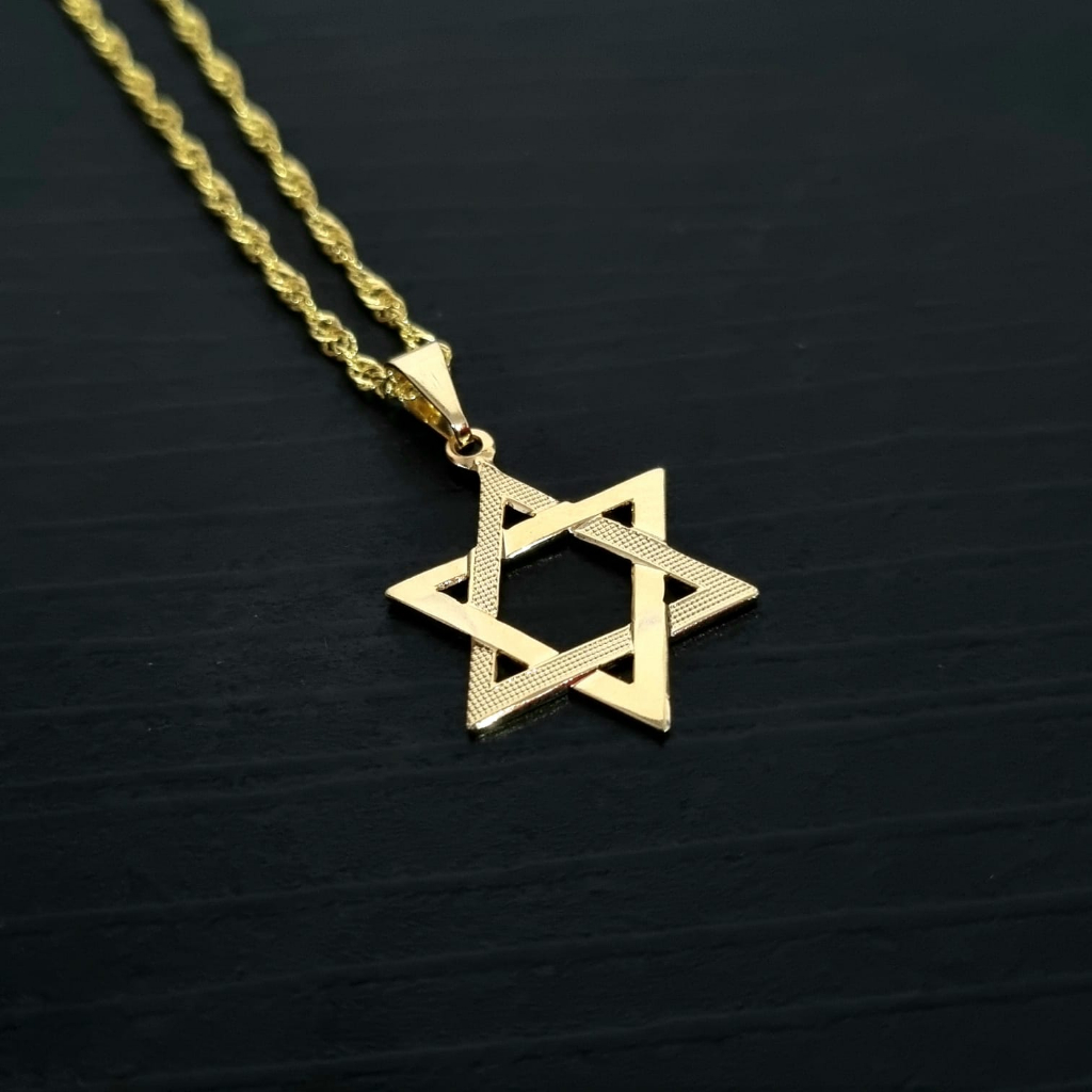 Colar Corrente Estrela de Davi Dourado Feminino e Masculino Aço Inox Antialérgico