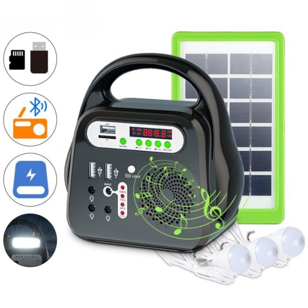Kit Gerador de Energia Solar Rádio Fm Multifuncional Bluetooth Usb Placa Solar 3 Lâmpada LED Lanterna Power Bank Camping Pescaria Acampamento