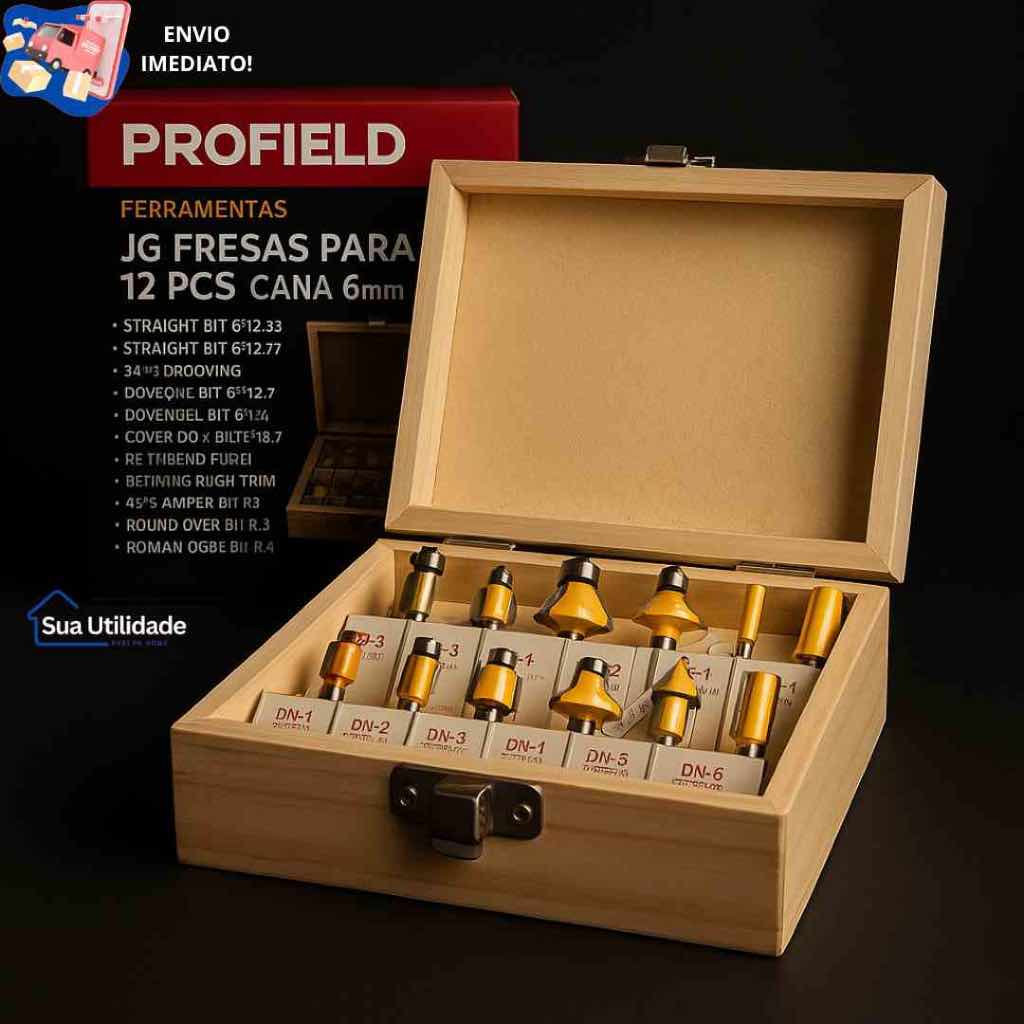 Jogo de Fresas para Tupia 6mm Madeira Kit Completo com 12 Peças e Estojo Ideal para Marcenaria e Carpintaria
