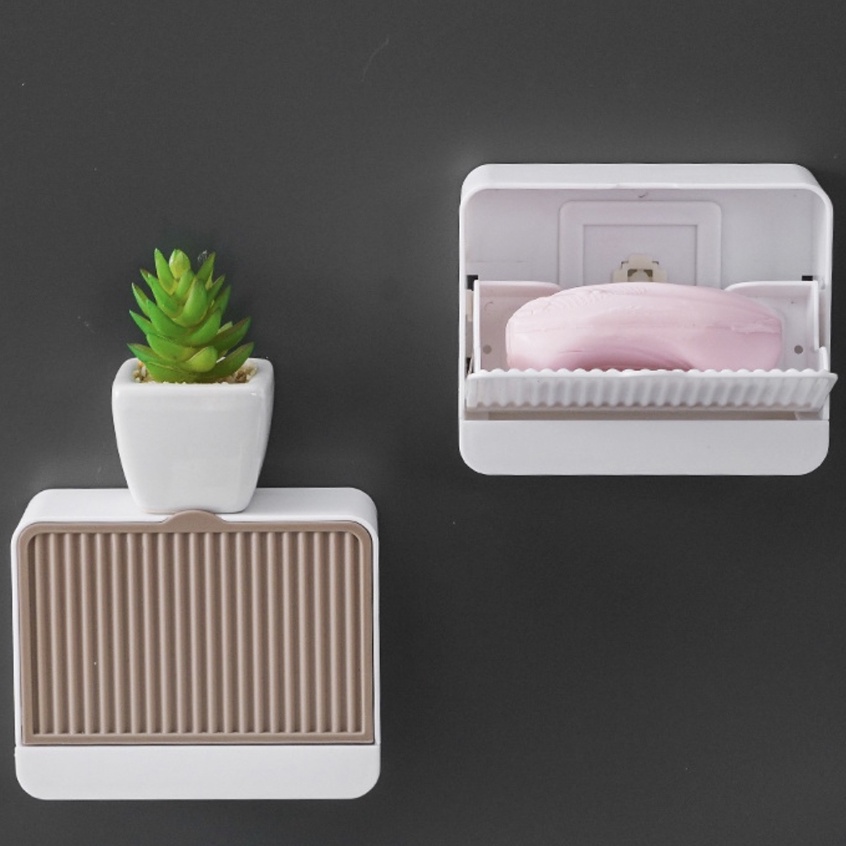 Saboneteira De Parede com Tampa Para Banheiro Com Suporte Ventosa Minimalista montada em parede com tampa dreno de pó sabonete fixação Adesivo