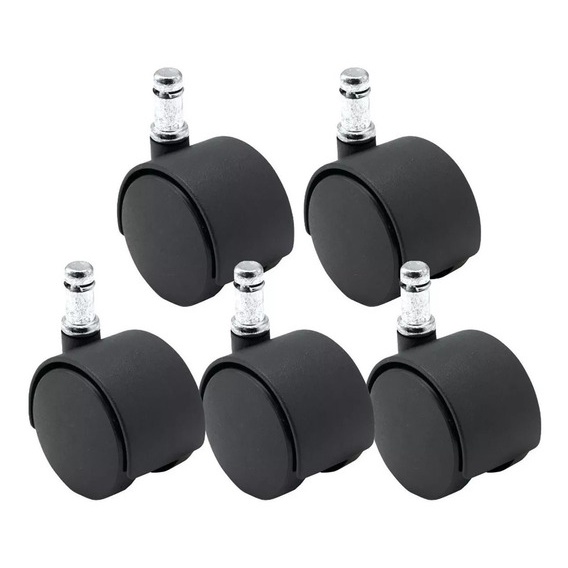 Kit 5 Rodinhas Rodízio Universal Para Cadeira De Escritório Giratória Pu Anti Risco 50mm Preto Ultra Resistente 120 kg