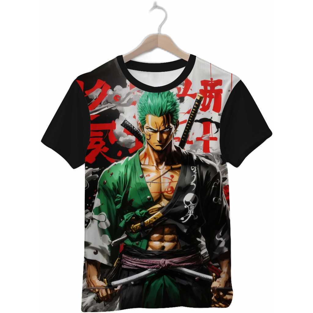 Camisa Camiseta Personalizada Anime One Piece Zoro Impressão Digital Arte Própria - OBDS