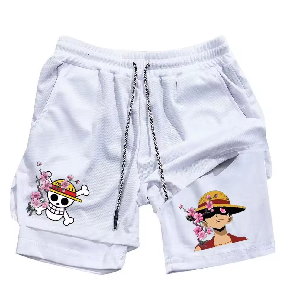 Short Compressão 2 em 1 Dry-Fit Arte Luffy Gear 5 Zoro Roronoa Arte Anime One Piece Mode Fitness