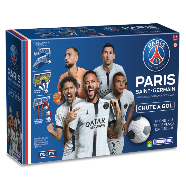 KIT 2 TRAVES + 1 BOLA + 1 ALVO + BARREIRAS PSG PARIS SAINT GERMAIN BRINQUEDO INFANTIL CHUTE A GOL MINI GOLZINHO JOGO DE FUTEBOL PARA CRIANÇA NEYMAR MESSI MBAPPE