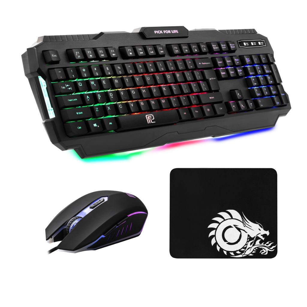 Kit Teclado E Mouse Gamer Semi Mecânico Com Luzes Led Rgb Computador Notebook PC