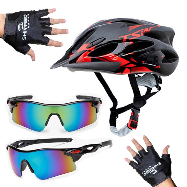 Capacete Bike Ciclismo Bicicleta Tsw Led + 1 Óculos + 1 Luva