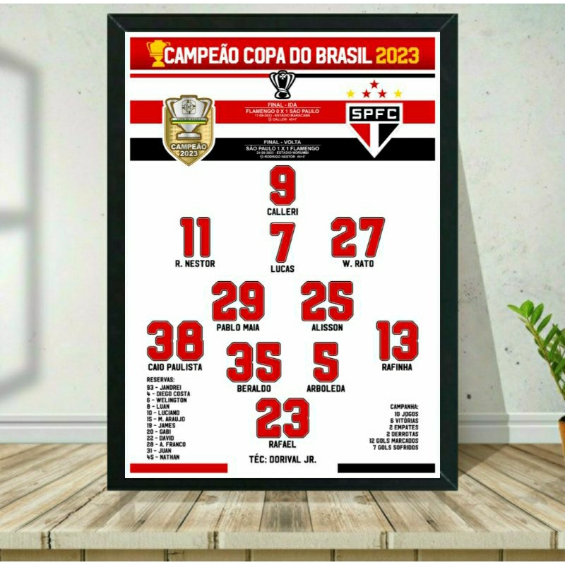 Placa Quadro Decorativo escalação São Paulo Campeão da Copa do Brasil 2023 Decoração Tricolor SPFC Soberano