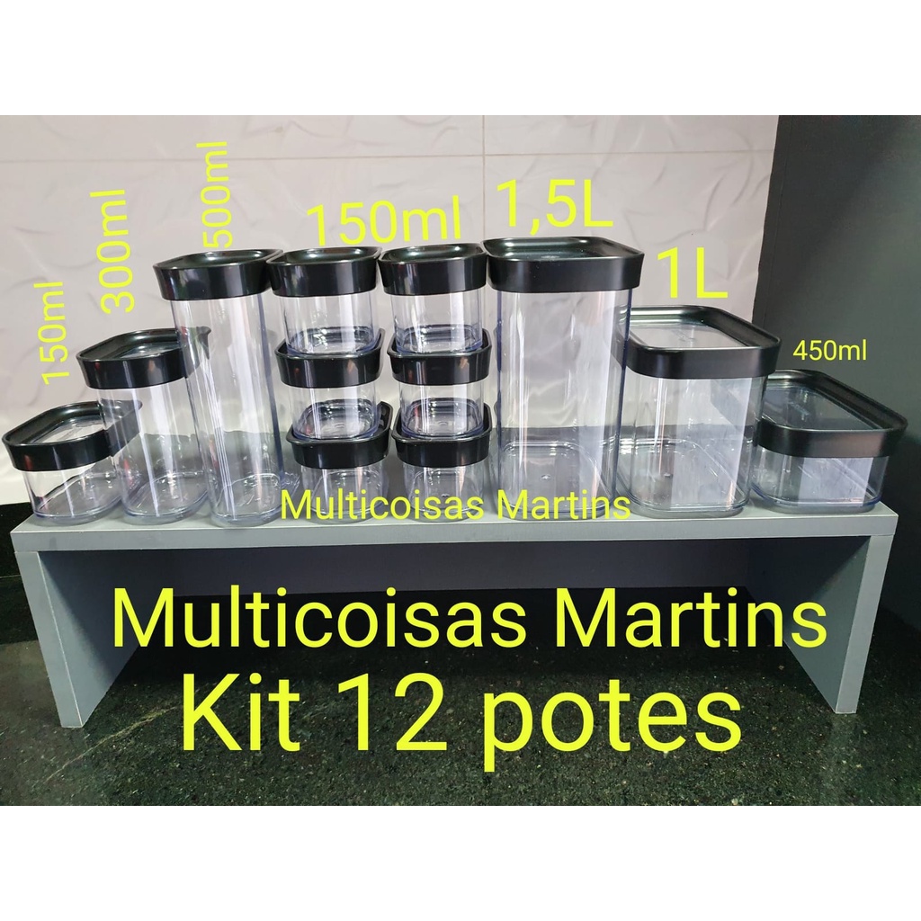 Kit Conjunto de 12 Potes Herméticos para Mantimentos Acrílico 12 POTES