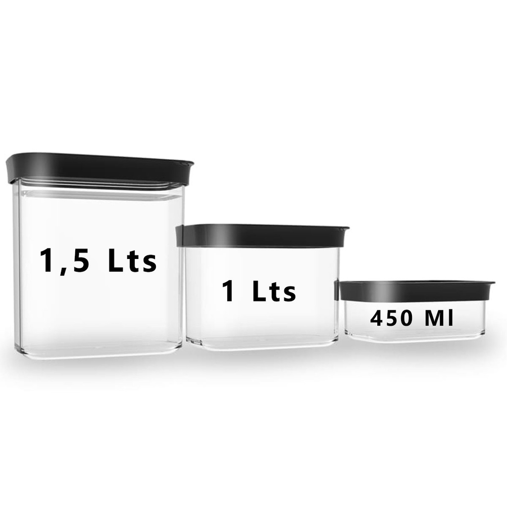 Kit Conjunto de 03 Potes Herméticos para Mantimentos e Temperos Acrílico - Anti Impacto