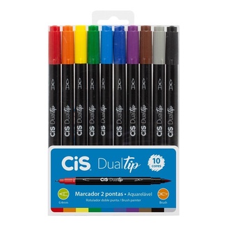 Kit Caneta Brush Cis Dualtip Aquarelável 10 Cores