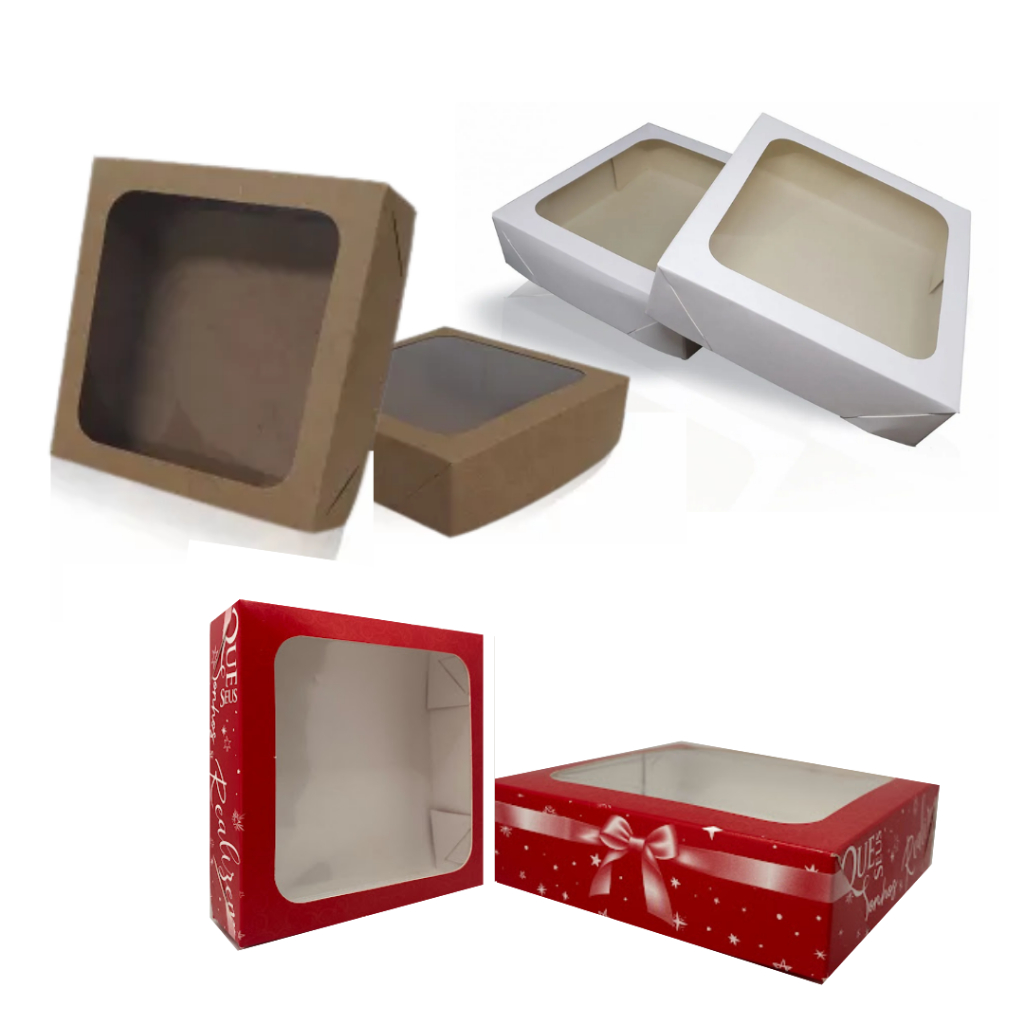 Caixa Embalagem Presente com Visor - 15x15x04 cm - Kit 20 Un