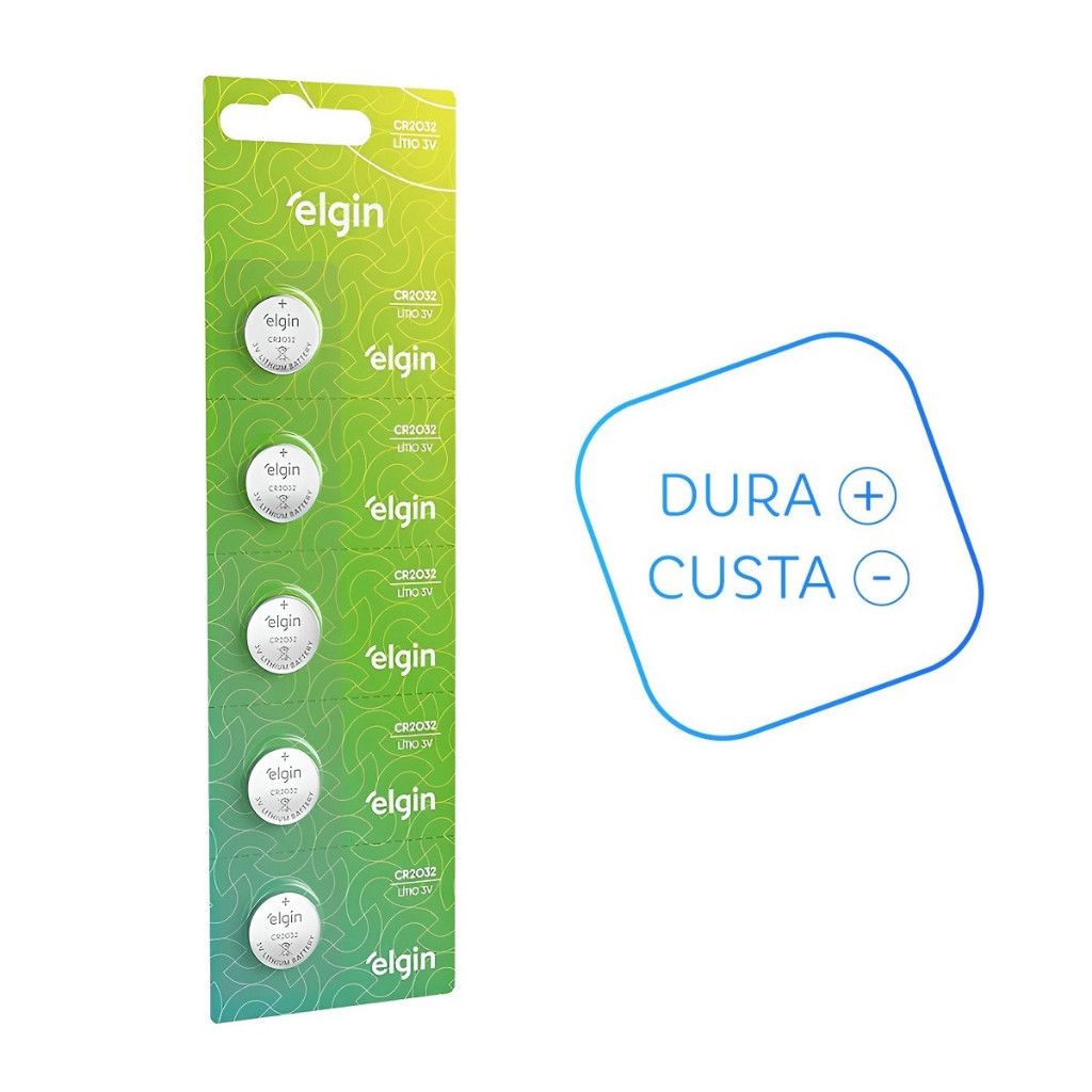 5 Baterias Pilha Botão CR2032 3V Elgin Moeda 1 Cartela (Blister com 5) CR 2032 3 V