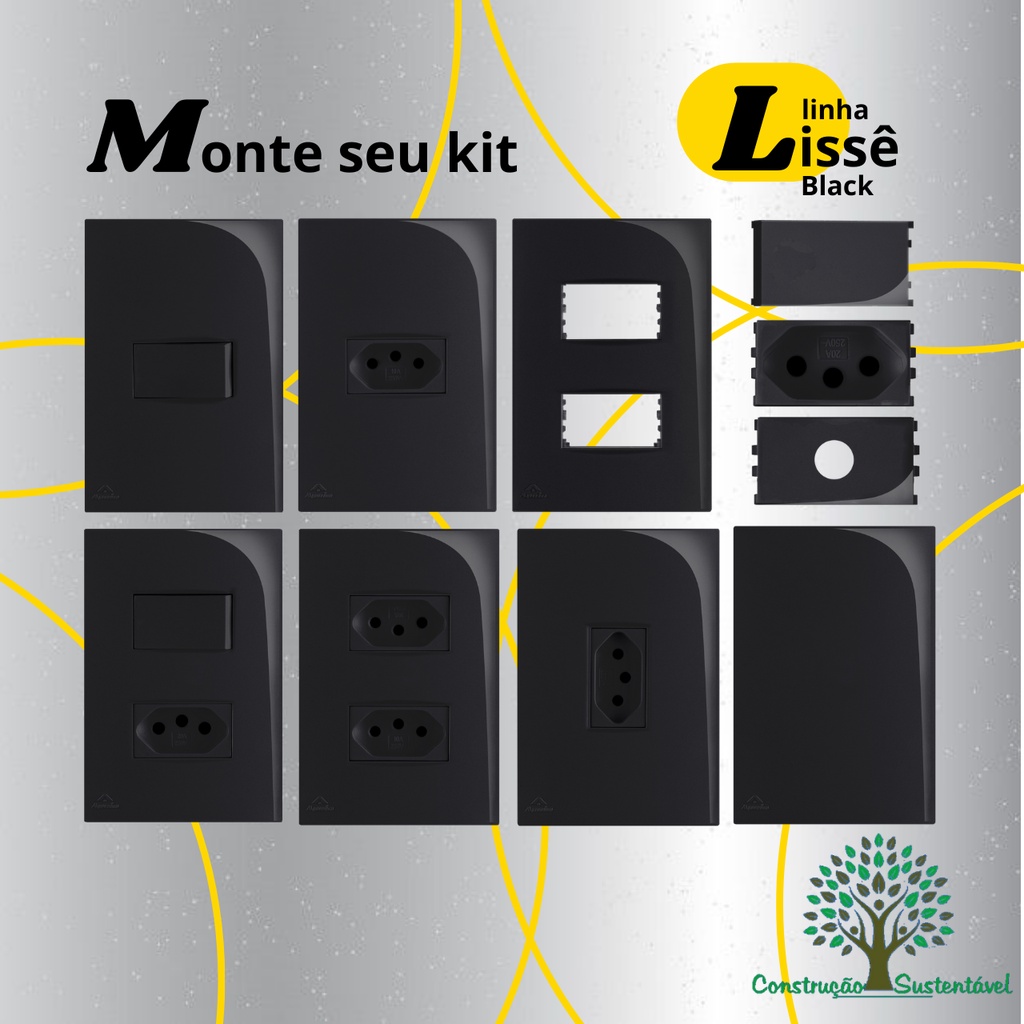 Tomada com Interruptor, Interruptor Preto, Tomada Preta 10a E 20a, Tomada Dupla, Modulos - Linha Apoio Lissê Black