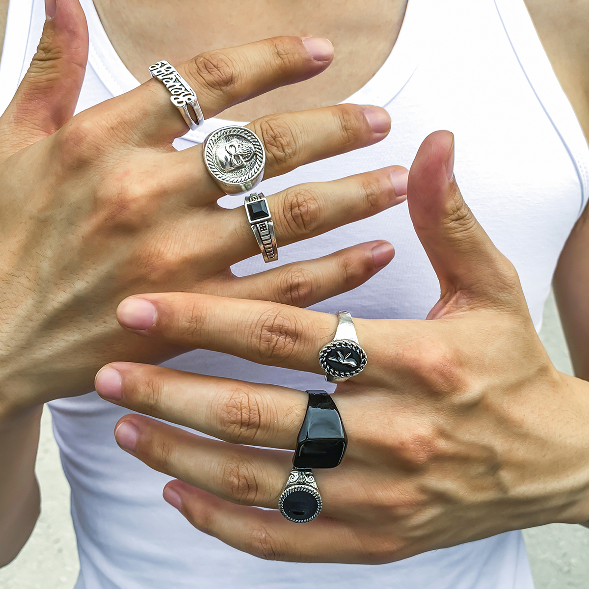 Punk 6 Pcs/Set Skull and Letter Rings for Men Vintage Daily Cool Boy Acessórios Em Anéis De Dedo À Mão 2023 Fashion Jewelry Presentes Masculinos