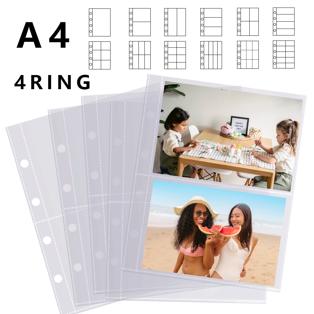 10pcs/pack A4 Páginas De Recarga De Álbum De Fotos De Folha Solta Para 4 Anéis De Encadernação E Mangas Protetoras De Arquivos 10 × 15 6 4 Livro De Cartões Fotográficos