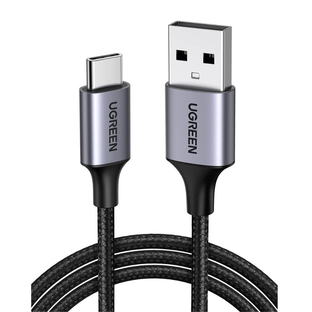 Cabo UGREEN USB Tipo-C 3A 2M Rápido Alumínio Trançado Nylon 200cm Para Motorola, Samsung, Xiaomi, Sony, Controle PS5
