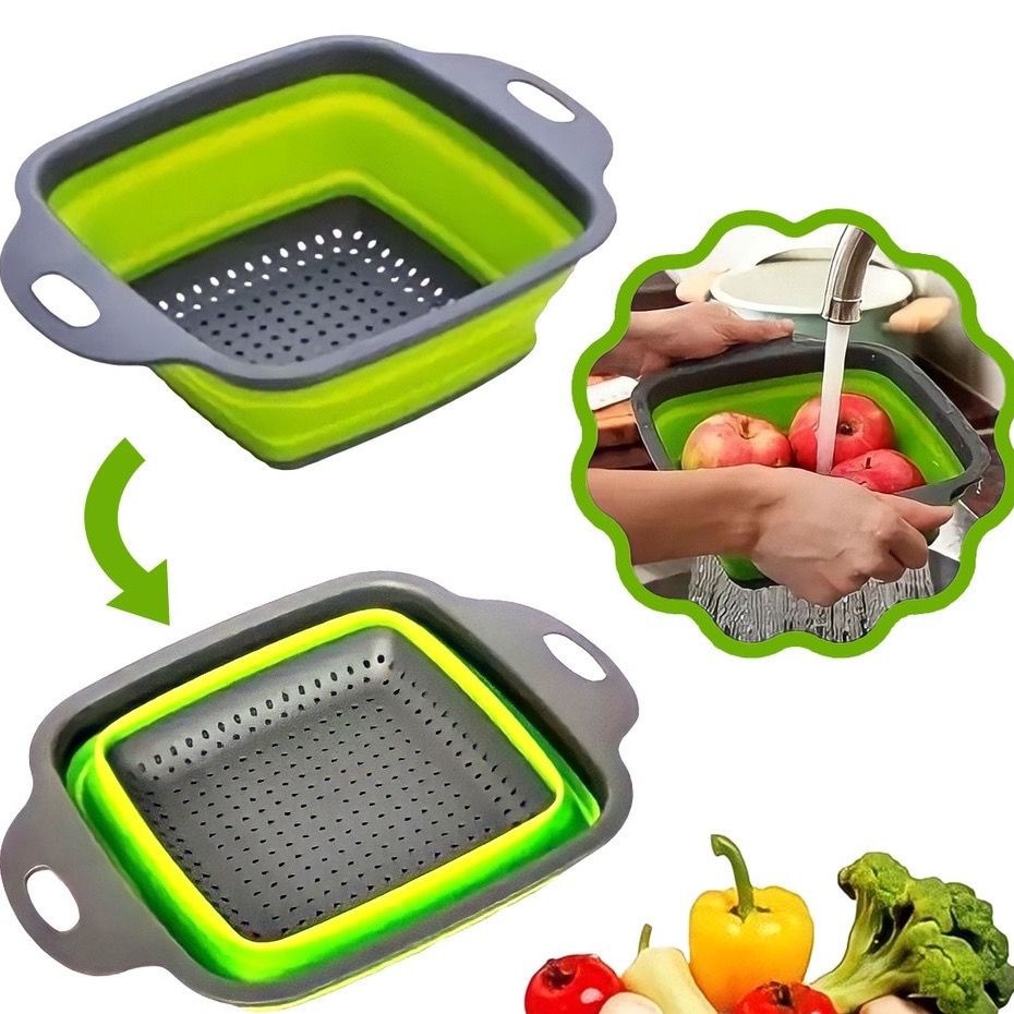 kit 2 Escorredor de Silicone Quadrado Retratil Multiuso com Alça - Macarrão - Frutas