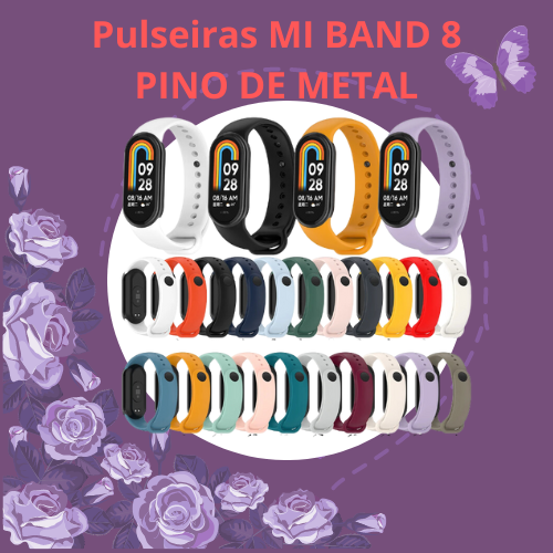 Pulseira de silicone colorida para Smartband Xiaomi Mi Band 8 PINO DE METAL estoque no Brasil